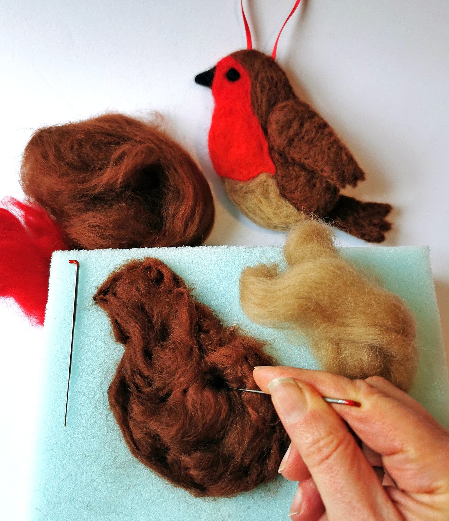 Using a barbed felting needle you will learn how to sculpt and shape fleece into firm shapes to create this most recognisable and loved winter bird.